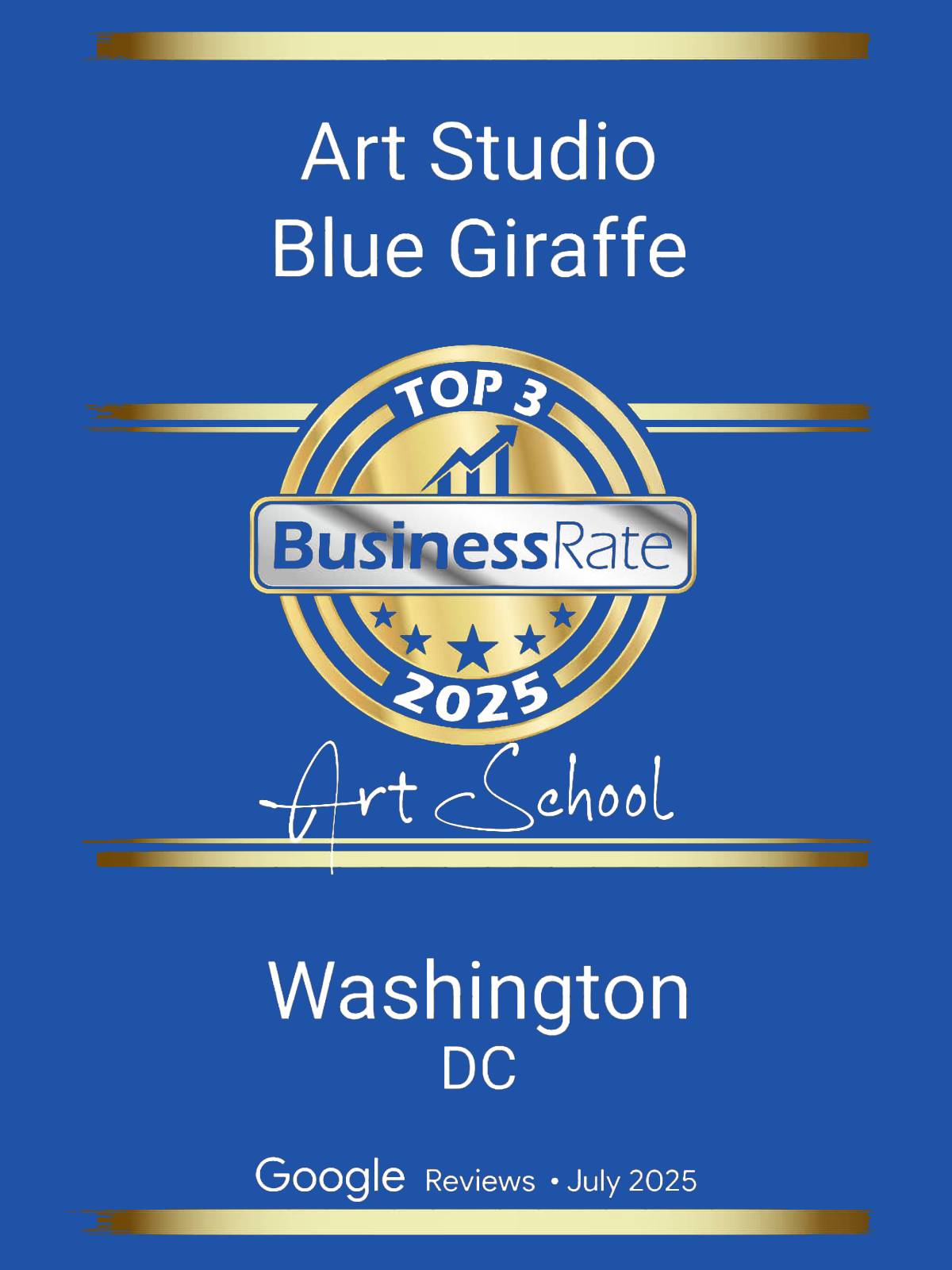 At Blue Giraffe, creativity knows no limits. Our fun, colorful studio invites kids to paint, sculpt, and craft their imaginations into life! We celebrate every masterpiece and encourage every child to explore, create, and shine — one colorful brushstroke at a time.